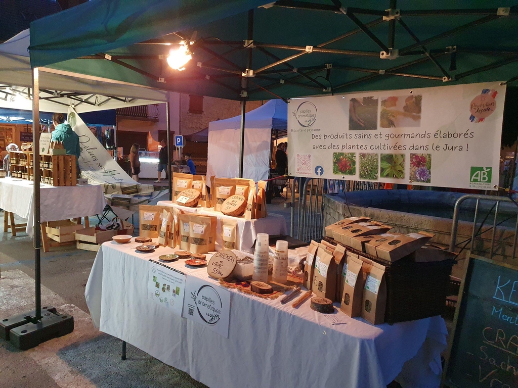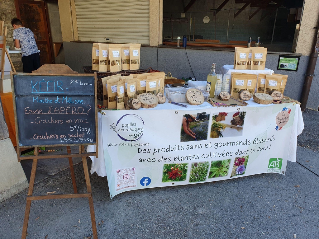 1/ Je cultive l'ensemble des plantes utilisées dans mes produits, et le reste de la matière première est local (à moins de 100 kms de la ferme), principalement jurassien ; ou français (sel et sucre).